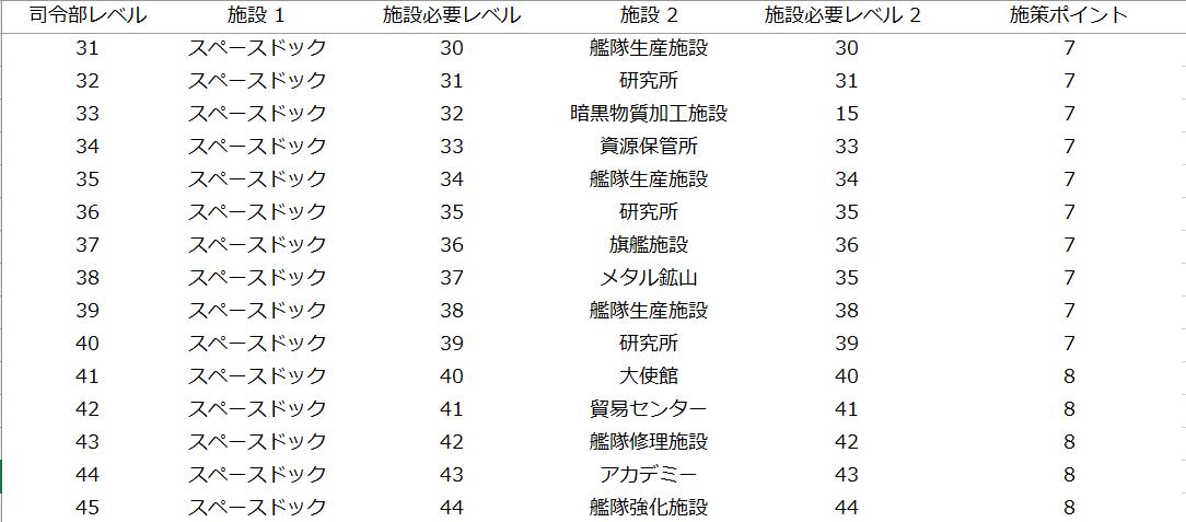| 46 | スペースドック | 45 | 交易所 | 45 | 8 |